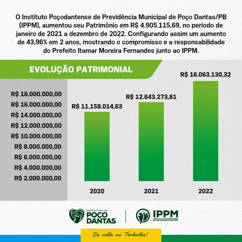 Totalizando, entre os meses de janeiro a dezembro de 2022, o IPPM recebeu de repasses correntes R$ 2.810.256,23, totalizando um superávit financeiro de R$ 3.419.892,51, no ano de 2022, conforme dados levantados pelo próprio Instituto.