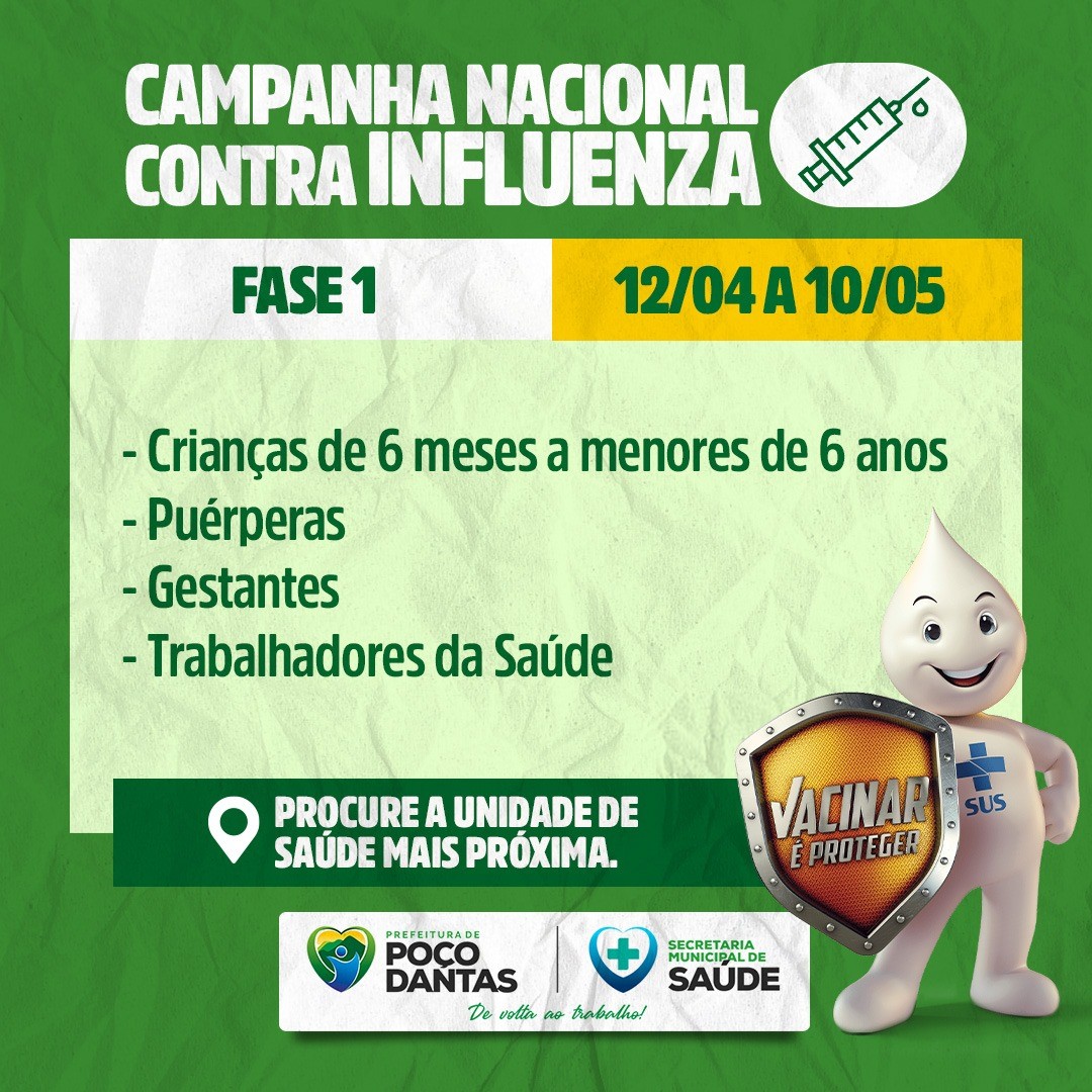 A Prefeitura Municipal de Poço Dantas iniciou na segunda-feira (12) a Campanha Nacional de Imunização Contra a Influenza (H1N1).