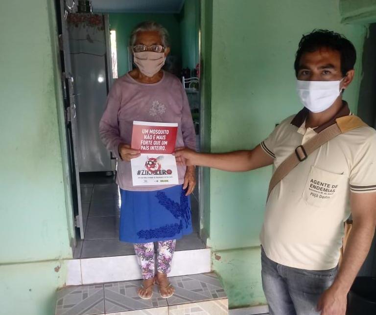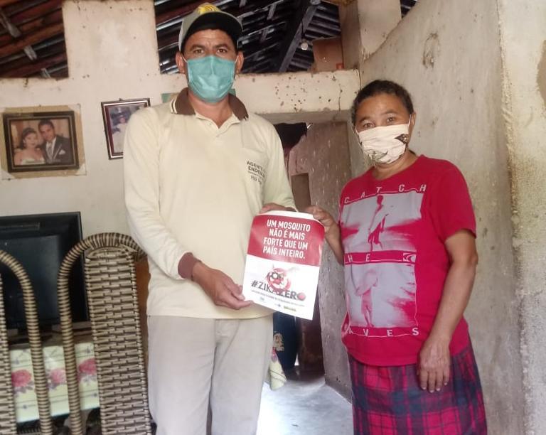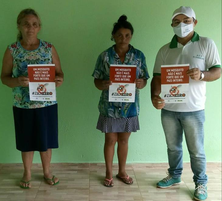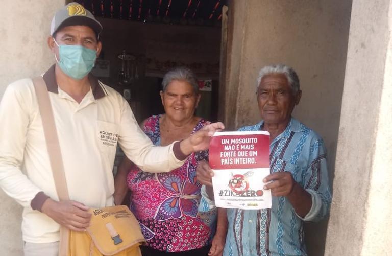 Os Agentes de saúde também têm fortalecido a campanha de combate às arboviroses fazendo orientações e entrega de panfletos em toda a cidade.