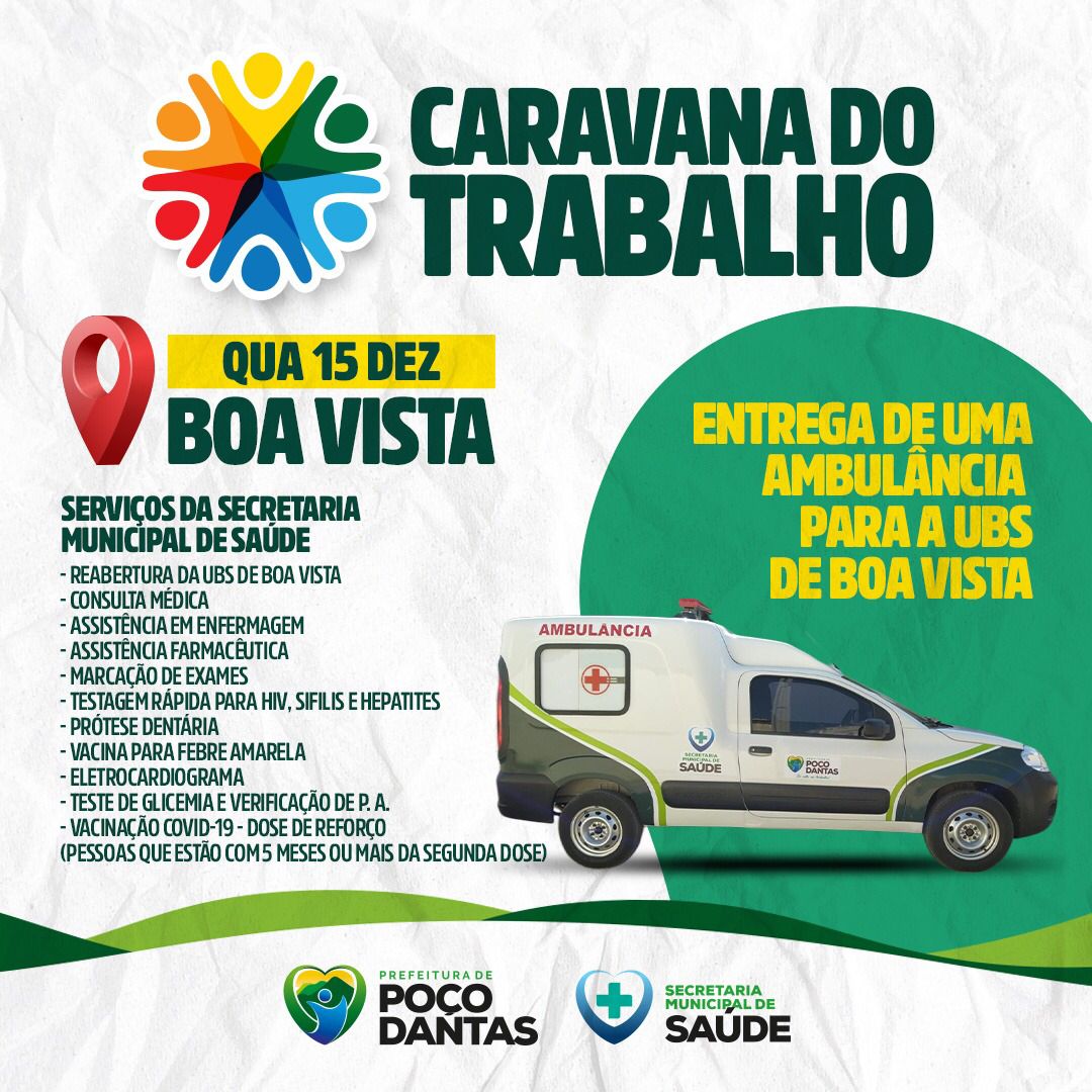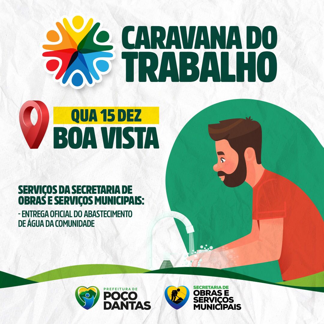 Amanhã (15) a Comunidade de Boa Vista irá receber a Caravana do Trabalho, onde a Prefeitura Municipal de Poço Dantas irá levar para a comunidade serviços de forma itinerante para a comunidade.