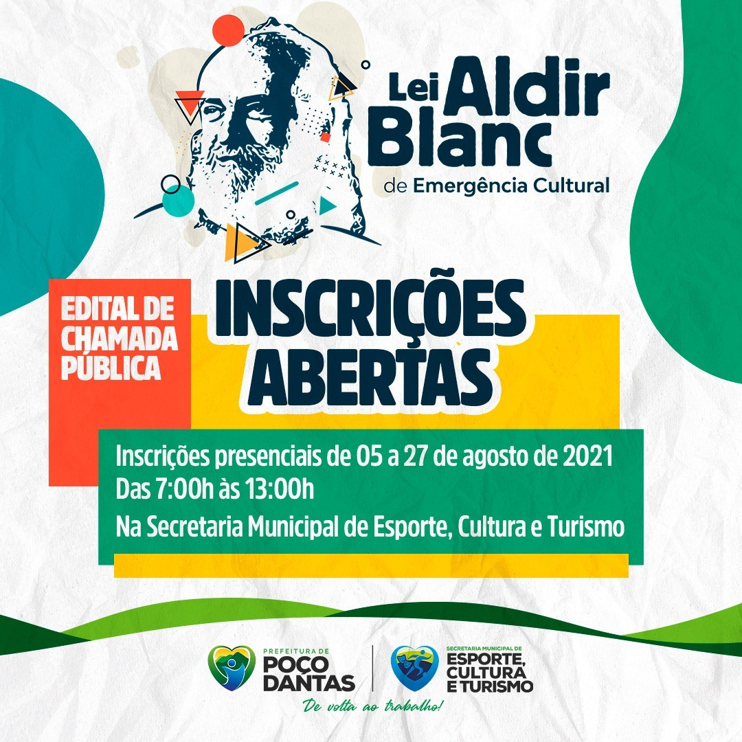 A Prefeitura Municipal de Poço Dantas, através da Secretaria Municipal de Esporte, Cultura e Turismo, está com inscrições abertas para o Edital de incentivo emergencial a cultura vinculado a Lei Aldair Blanc.
